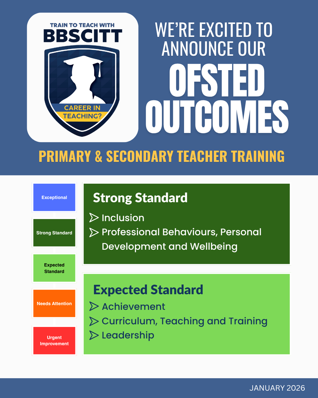 In January 2026, Barr Beacon SCITT became one of the very first School Centred Initial Teacher Training providers to have an Ofsted inspection under the rigorous new framework. The report, which has now been published, highlights the extent to which leaders prioritise the individual trainee experience. Rather than a one-size-fits-all approach, the report describes a “highly inclusive, nurturing provider culture” where trainees are treated as individuals.