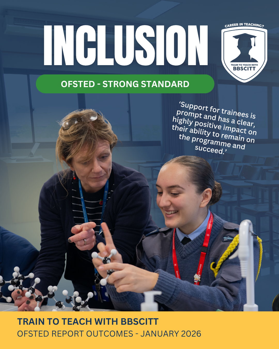 Michael Eszrenyi, SCITT Director, said: “I am immensely proud of the work the BBSCITT team and partnership does to ensure that all our trainees achieve, thrive and belong. Ofsted have once-again highlighted that our trainees benefit from high quality training, targeted support and rich placement experiences which enable us to secure excellent outcomes and develop reflective and resilient Early Career Teachers. The report is a testament to the collective ambition and endeavour of everyone at BBSCITT.”